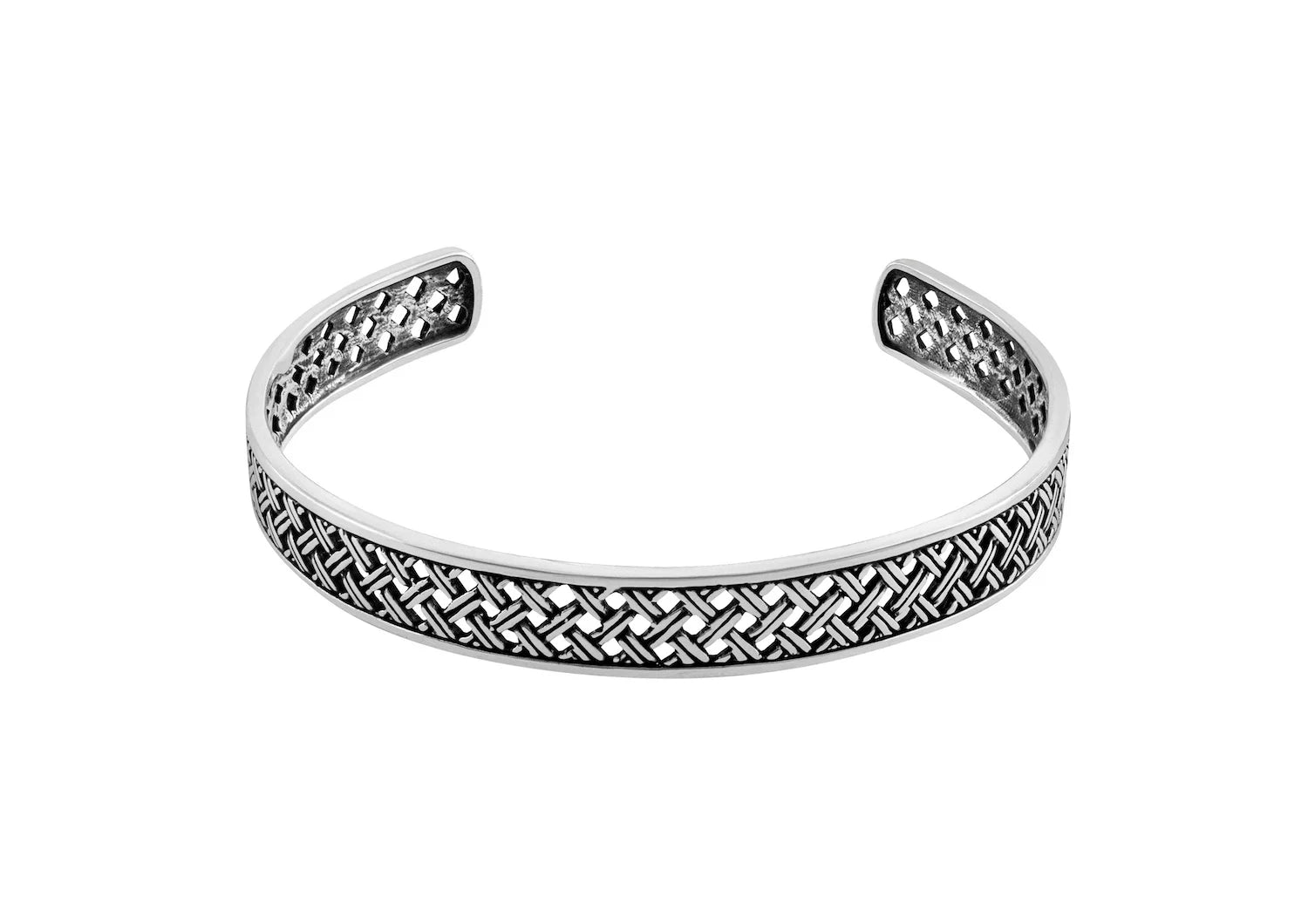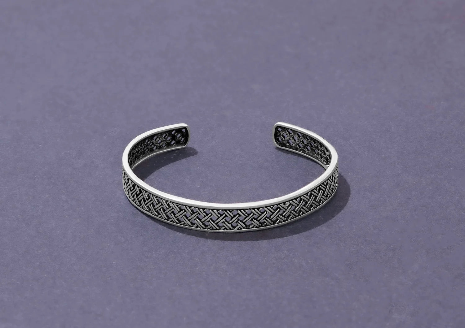 Where craftsmanship meets confidence — the CrossWeave Cuff Bracelet is a masterfully detailed piece designed for the modern man who appreciates timeless artistry. Handcrafted in 925 sterling silver, this men’s cuff bracelet features an intricate cross-pattern design, accentuated by a deep oxidised finish that highlights every weave and contour.