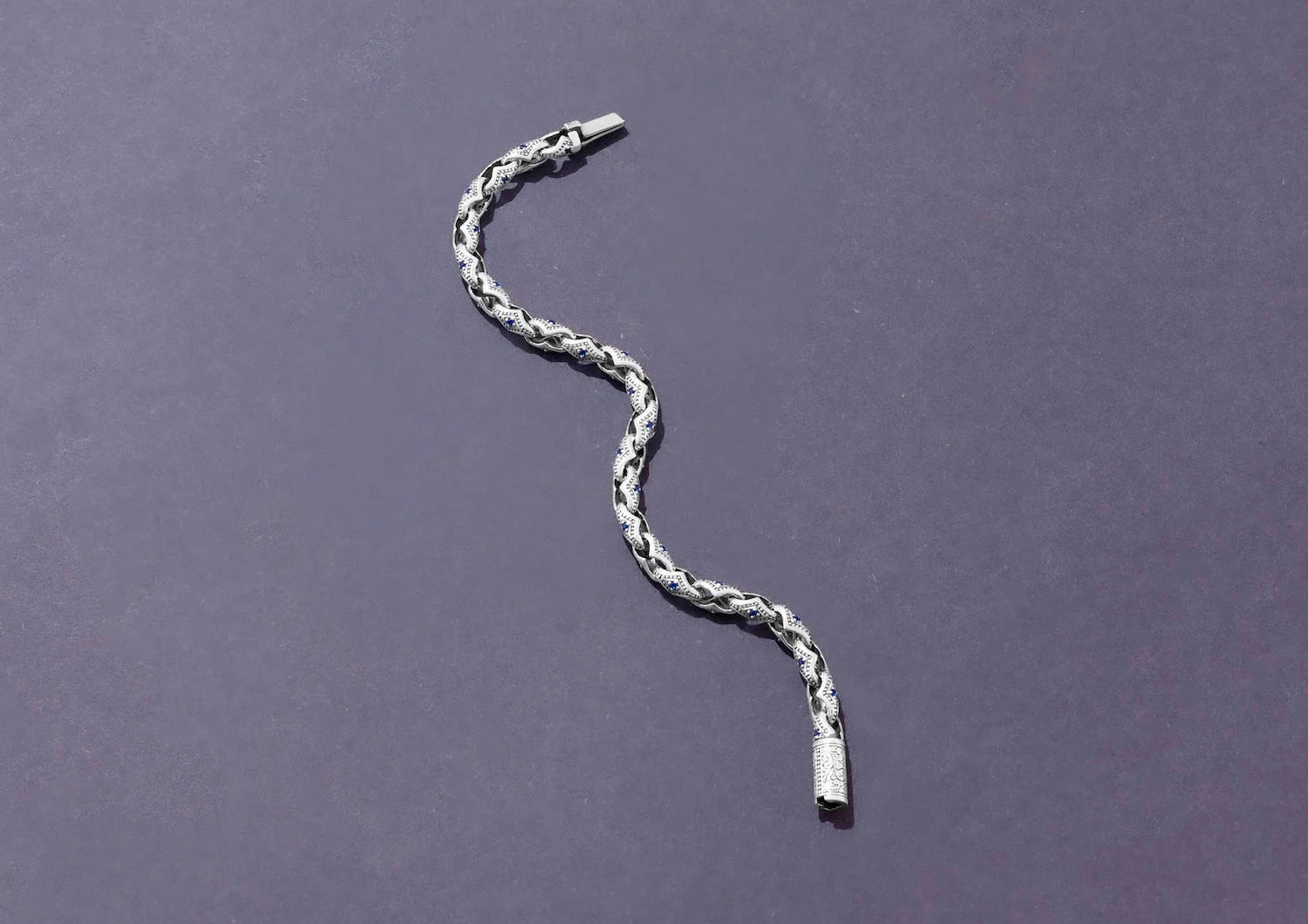 Where artistry meets attitude — the Helix Edge Bracelet is designed for men who appreciate the finer details of craftsmanship. Handcrafted in 925 sterling silver, this men’s bracelet features a twisted, interlocking pattern inspired by the natural flow of DNA — a symbol of individuality and strength. The intricate oxidised detailing adds depth and contrast, creating a bold visual texture that catches the light in motion.