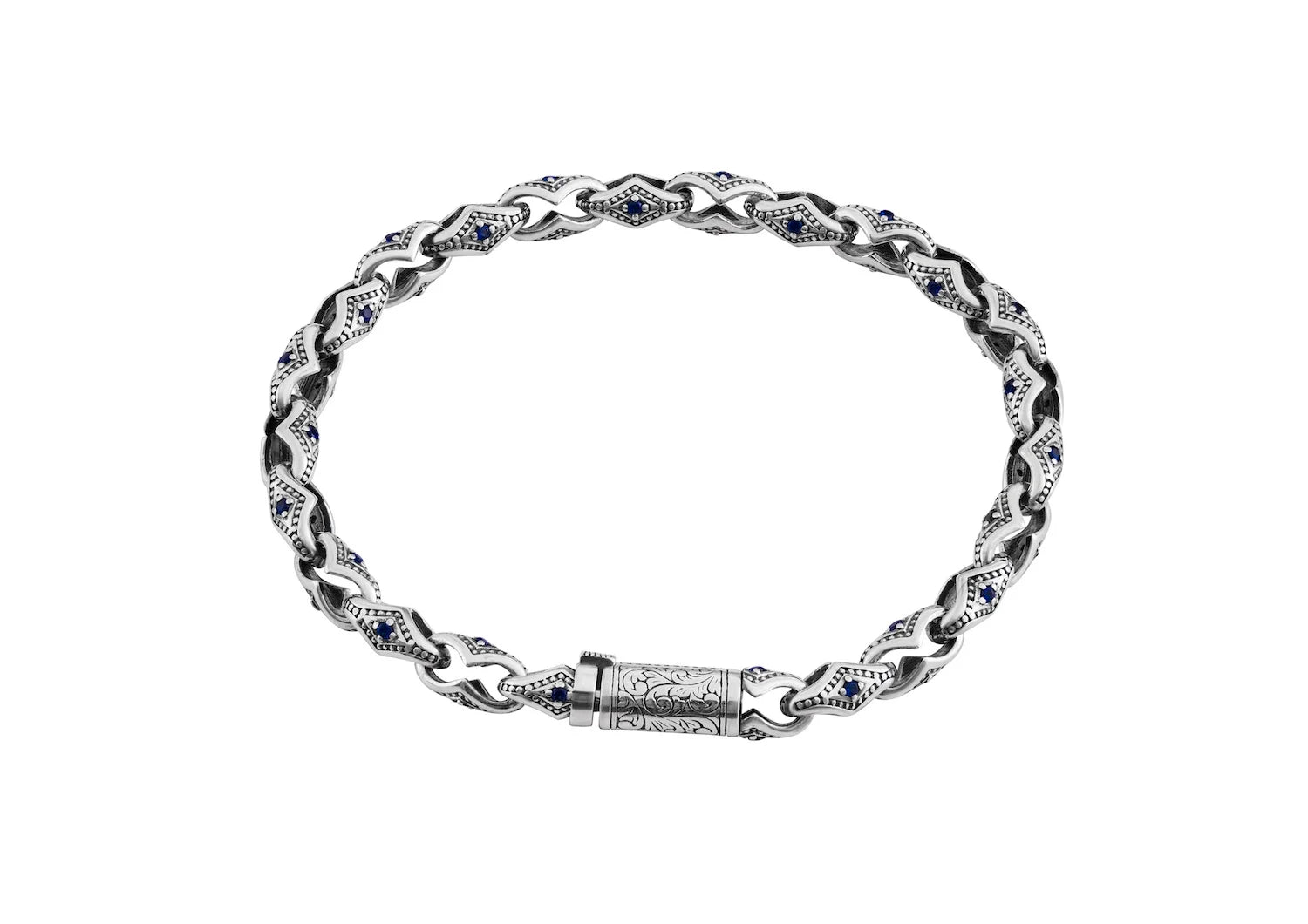 Built to be both striking and versatile, this silver bracelet for men pairs effortlessly with casual streetwear or tailored fits. The secure clasp ensures a perfect fit, while its intricate design makes it a conversation starter.