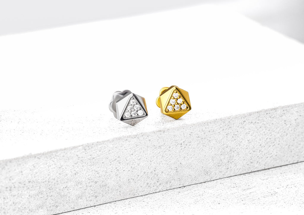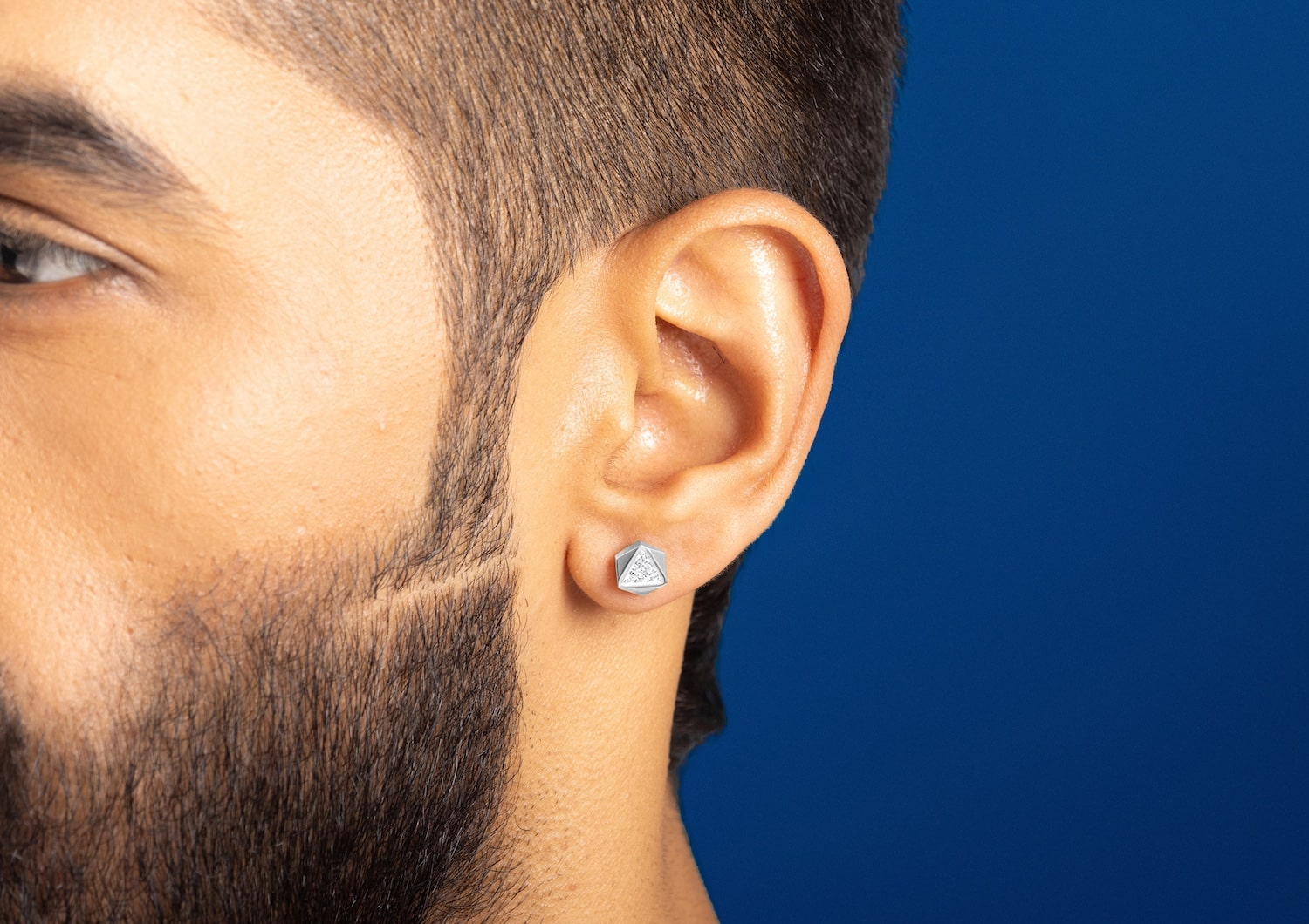 Unleash the perfect balance of geometry and luxury with the Hexaluxe Ear Stud. This standout piece features a hexagonal frame enclosing a triangular crystal arrangement, offering a unique and bold design that sets you apart. The intricate detailing and premium craftsmanship make it a sophisticated choice for men who appreciate modern elegance.