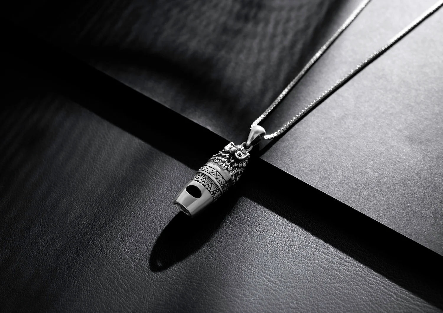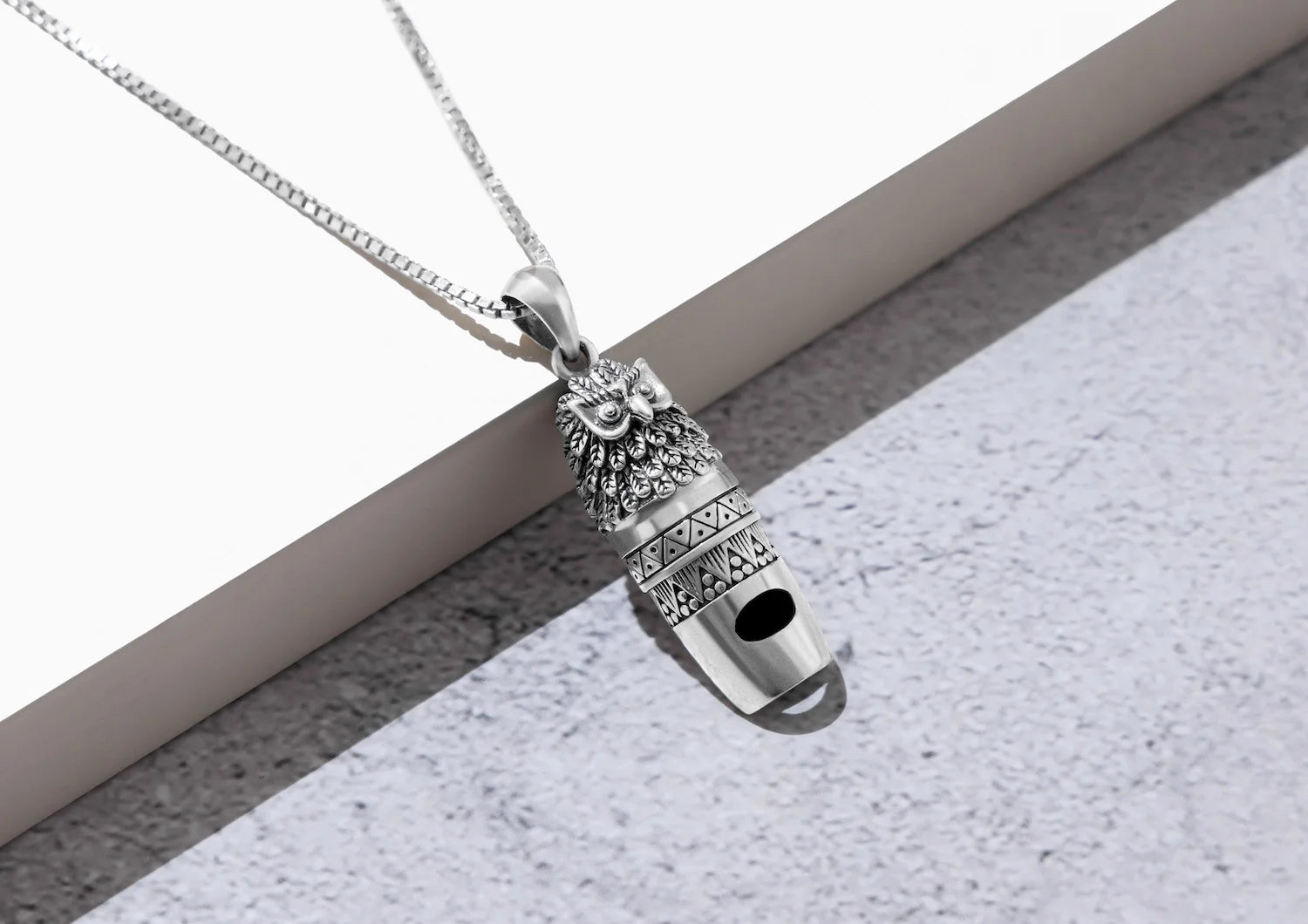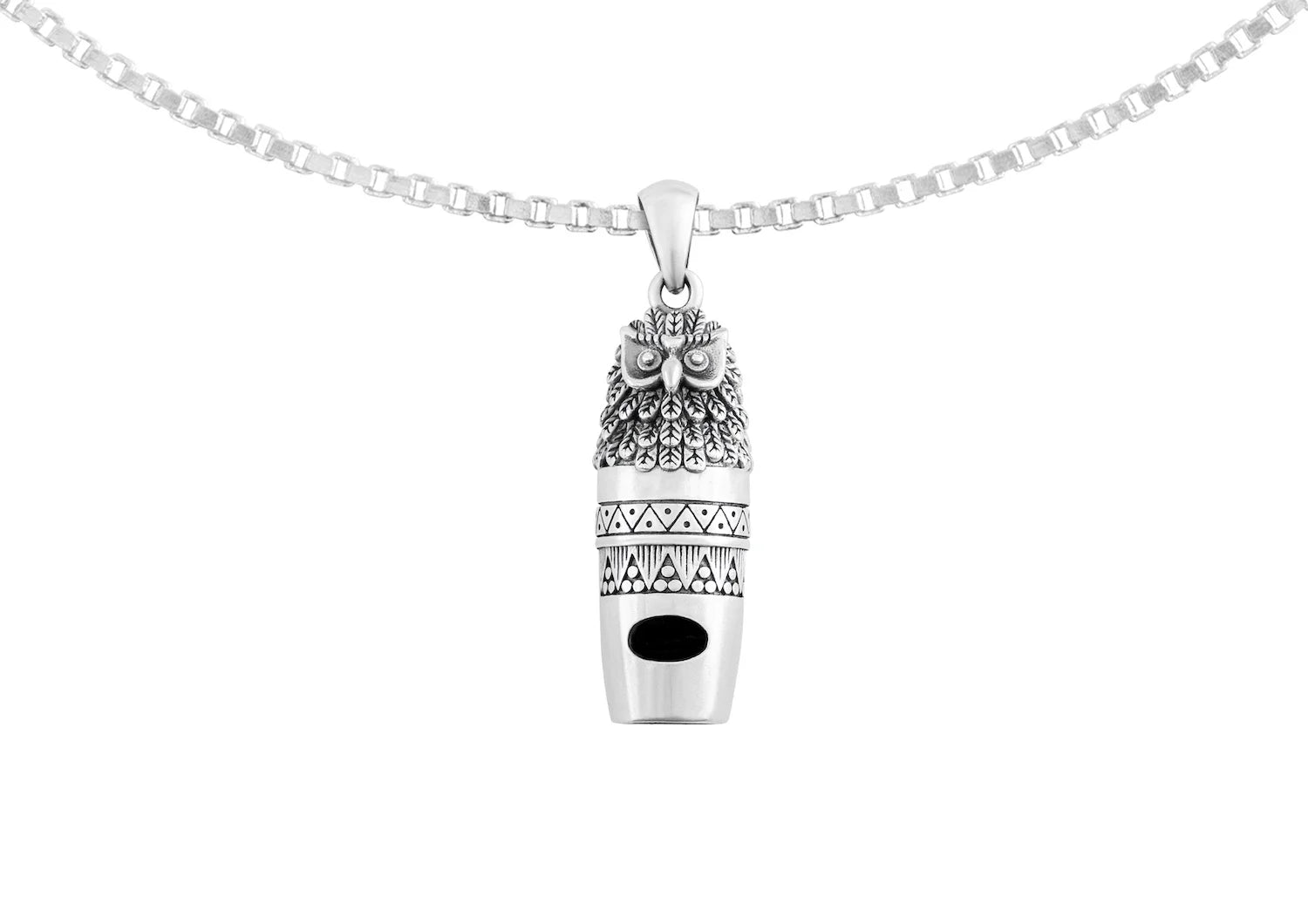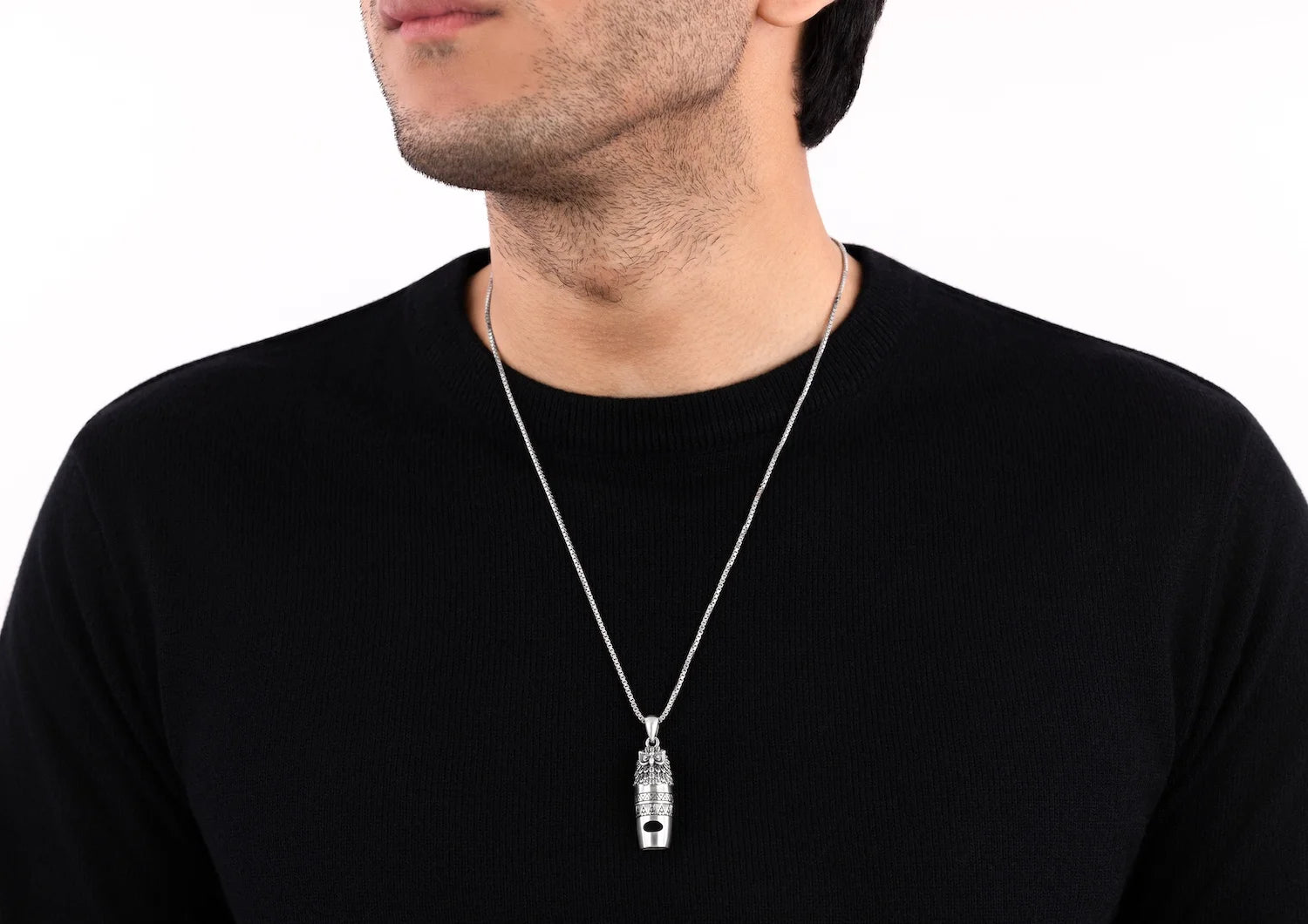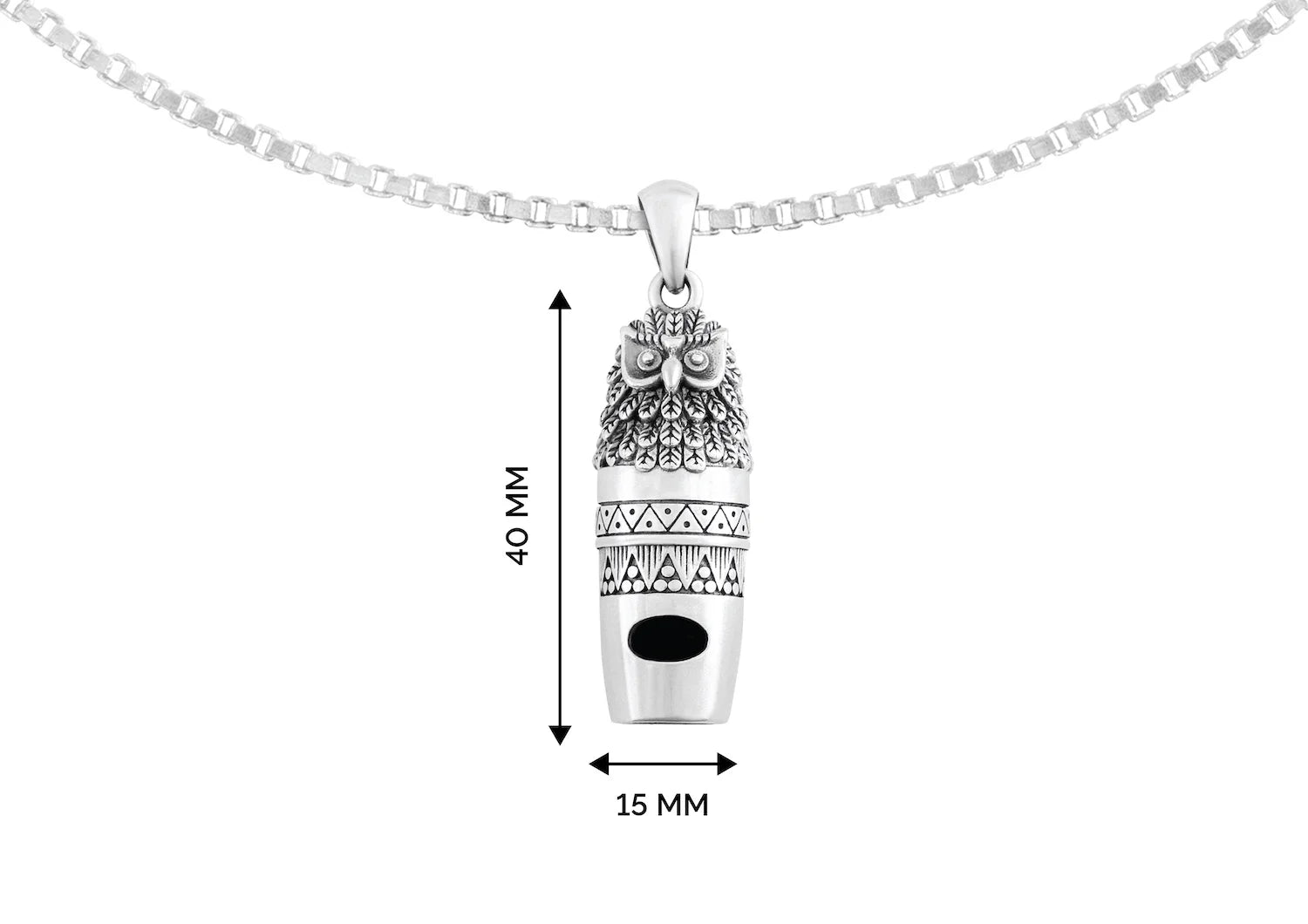 Crafted with intricate detailing that captures the sharp gaze and feathered precision of an owl, this men’s pendant doubles as a functional whistle — blending art, symbolism, and utility into one striking piece. The oxidised texture and tribal-inspired carvings add a rugged edge, making it an instant statement-maker.