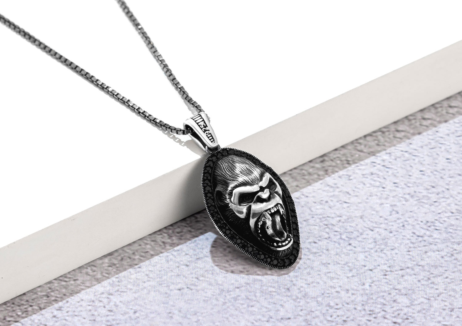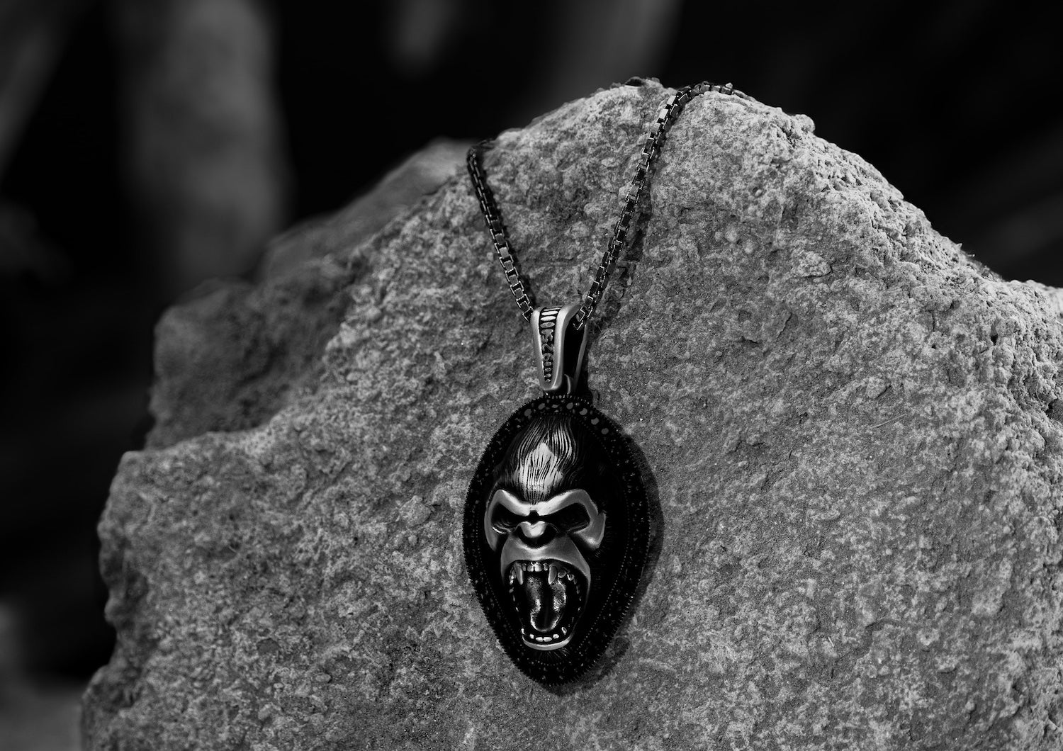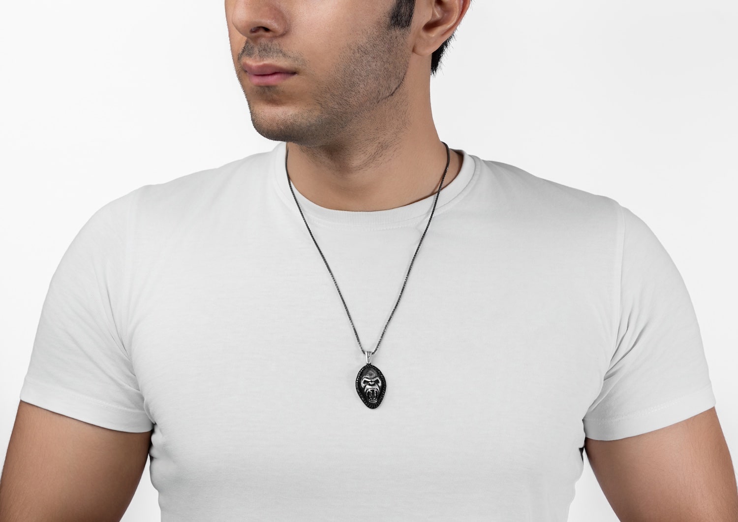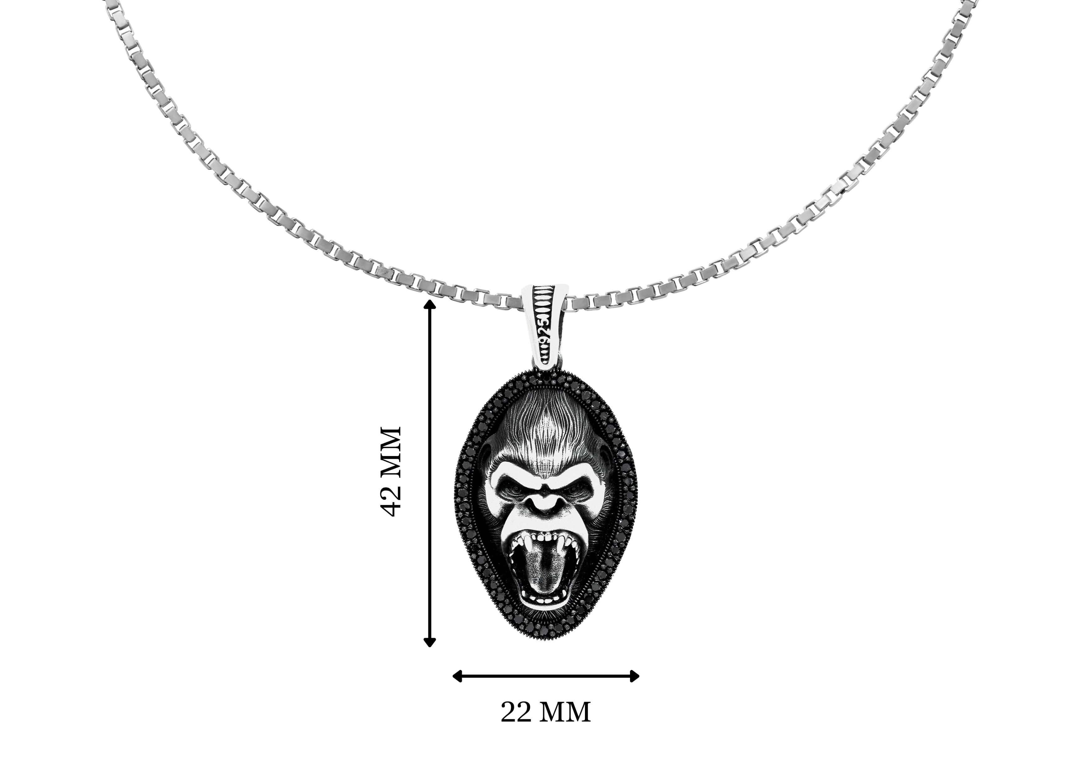 Rule the concrete jungle with our Oxidised Kong Pendant! This oxidised silver pendant roars with the iconic spirit of King Kong. Featuring a fierce screaming face, it exudes raw power and primal energy fit for the modern urban legend. Framed by a border of black obsidian gems, it adds a touch of mystery and edge to your style game. With all its detailed handwork, this pendant commands attention like no other. Embrace the iconic legacy of King Kong and unleash your inner beast with our oxidised Kong Pendant – because legends never fade.