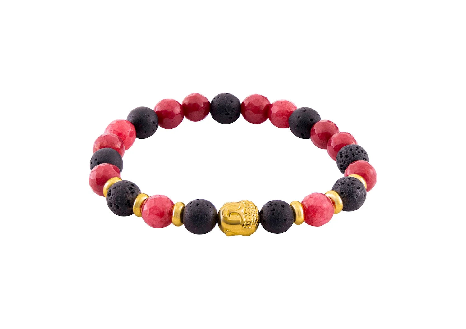 The Lava Stone, known for its raw and porous texture, is believed to absorb negative energy while promoting calmness and emotional stability. It also acts as a natural diffuser — add a drop of your favorite essential oil, and carry a soothing aroma throughout your day. Paired with Red Jasper, the “Stone of Endurance,” this bracelet with natural stones is said to boost confidence, stamina, and vitality — empowering you to take charge with grounded strength.