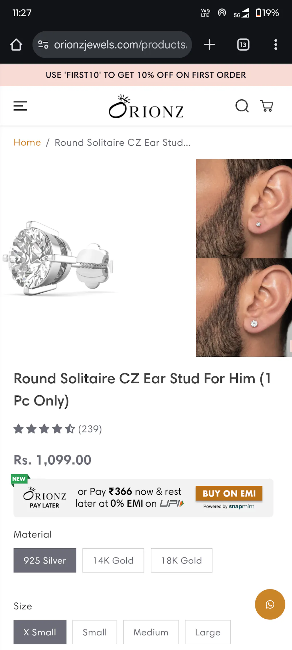 Just like your wardrobe basics are incomplete without a crisp black or a white well-fitting shirt, any studs for men earring collection too will remain incomplete without this one. No fuss, no furor, and easy to wear and a breeze to carry the whole day - this round-cut solitaire ear stud for men is a starter stud that you can switch to after your first piercing. Made with BIS Hallmarked Gold, your new piercing will be in good hands. We have used certified quality solitaire that assures long-term shine and shimmer. With an easy-to-wear screw back you can sleep in these men ear studs without any snags.