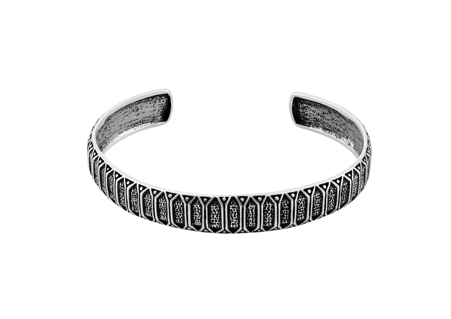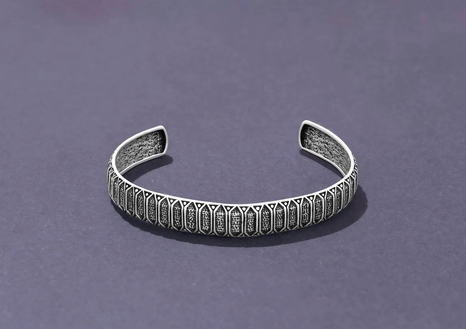 Strength meets sophistication in the Sentinel Edge Kada, a piece that captures timeless masculinity through refined craftsmanship. Hand-forged in 925 sterling silver, this men’s kada features a structured geometric pattern reminiscent of shield motifs — symbolizing protection, power, and perseverance. The oxidised finish brings out every fine detail, giving it a rugged, lived-in charm that ages beautifully with wear.
