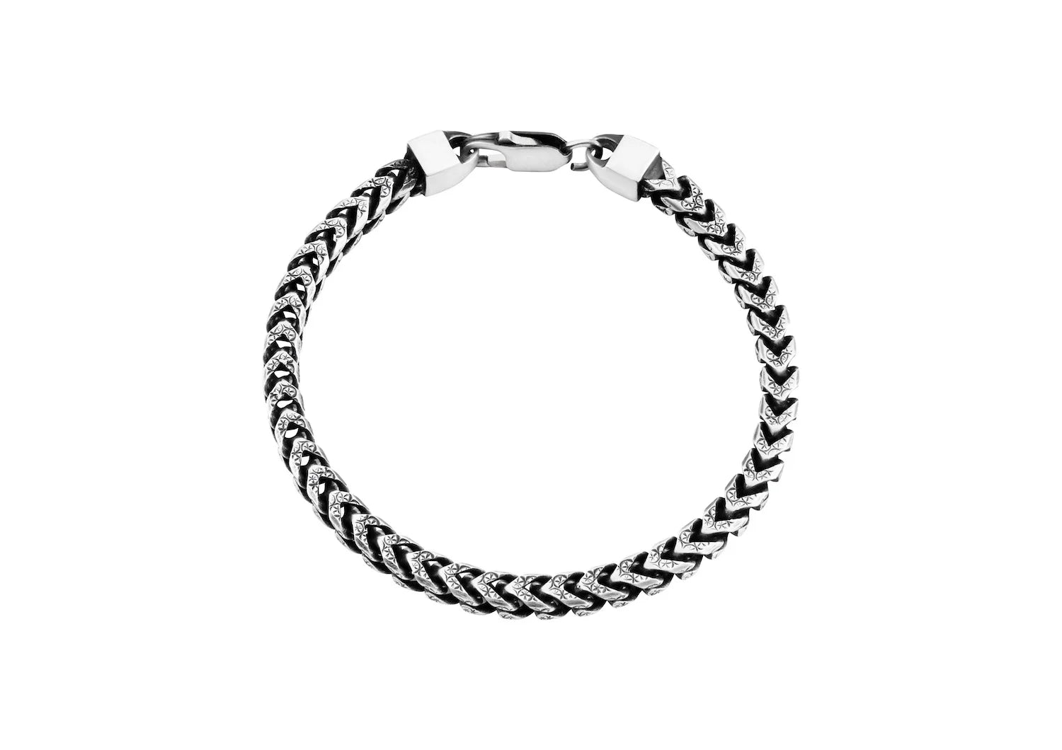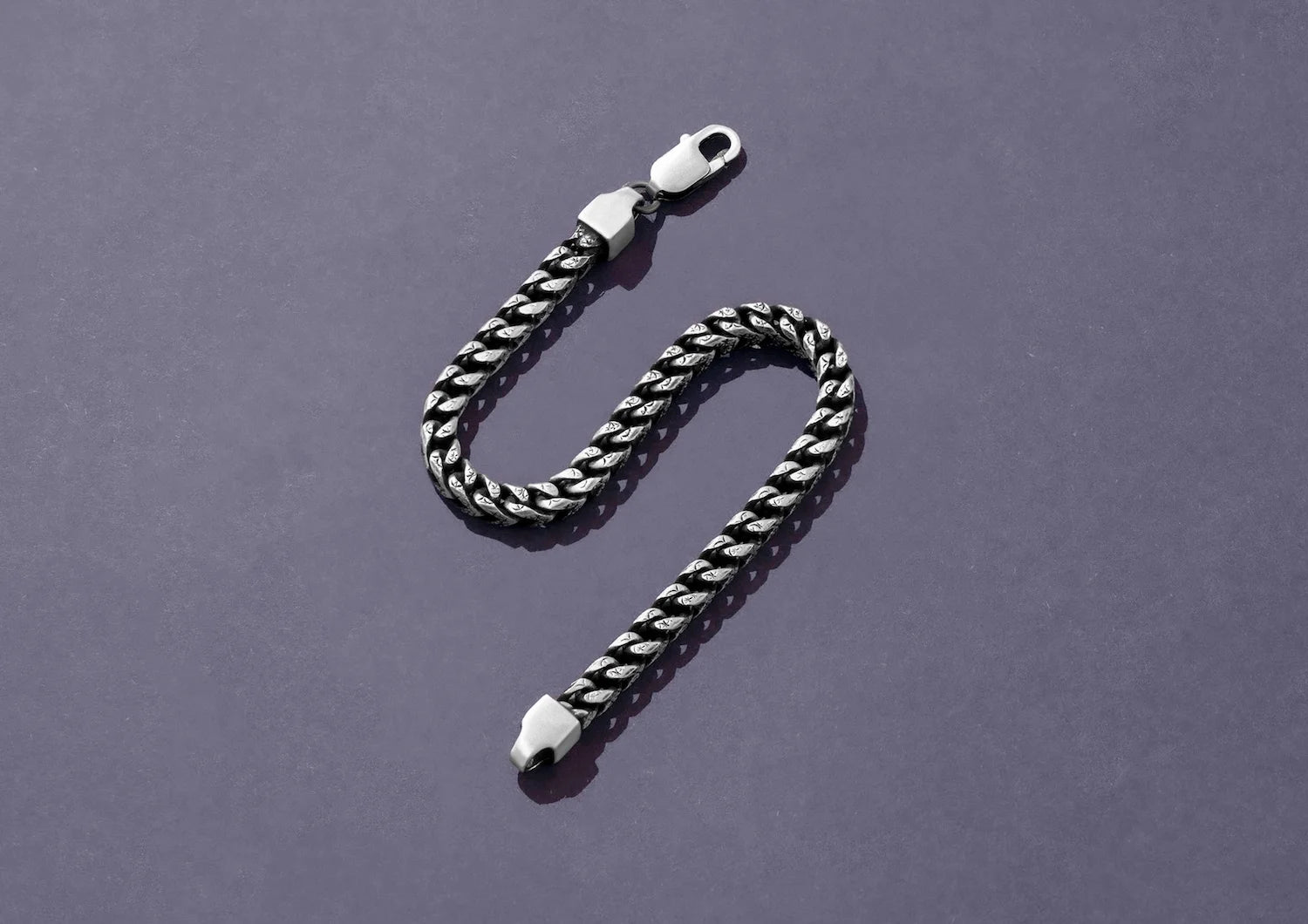 The intricate texture gives it a rugged sophistication — a perfect balance of classic silver craftsmanship and modern street-luxury appeal. Whether you pair it with your watch or wear it solo, this silver bracelet commands attention without trying too hard.