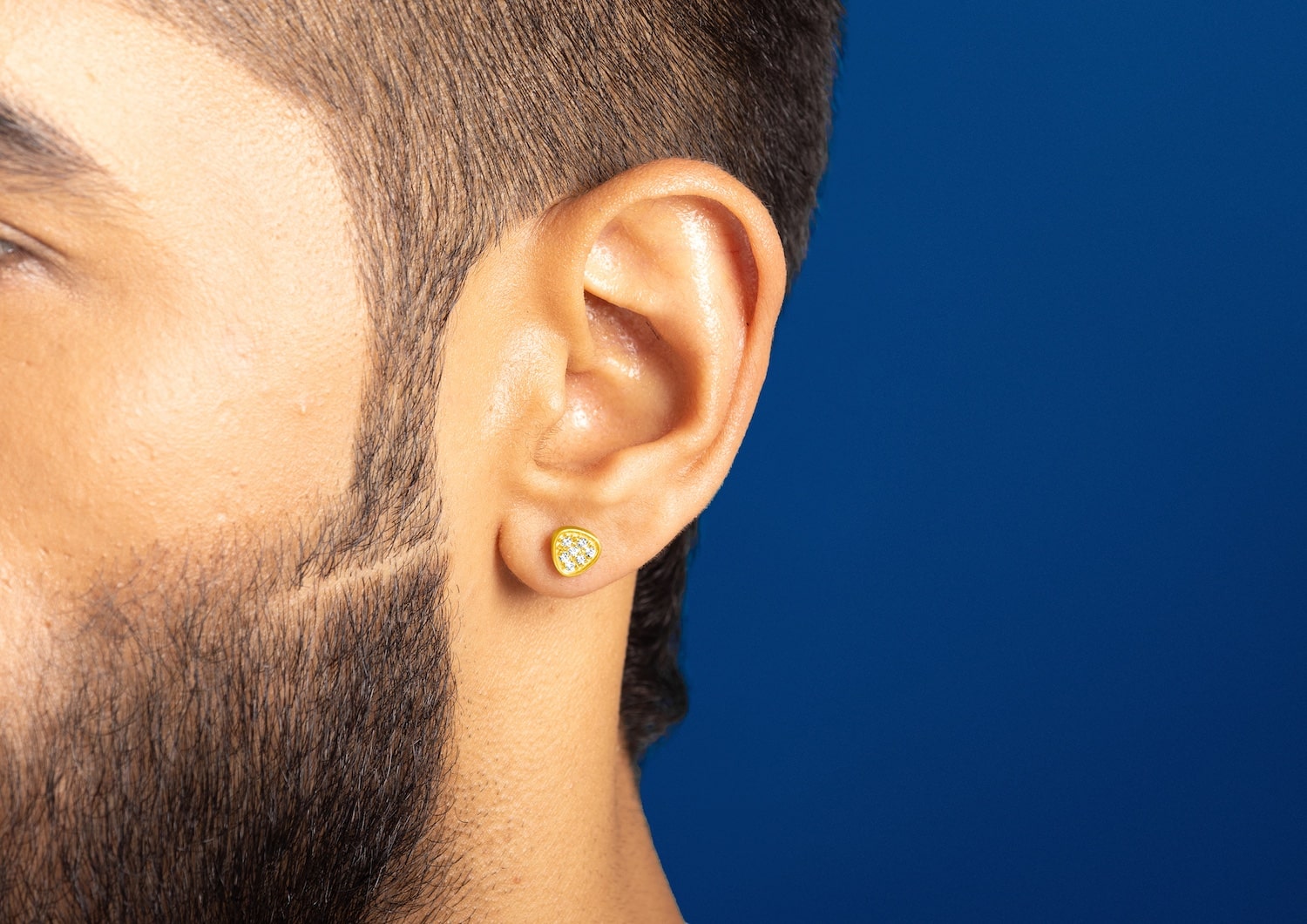 Expertly crafted for our men's collection, the Trilume Spark Ear Stud offers superior durability and a flawless finish. Its intricate crystal arrangement exudes sophistication, making it an ideal choice for both everyday wear and special occasions. Ignite your style with this ear stud for men, a blend of bold design and timeless sophistication.