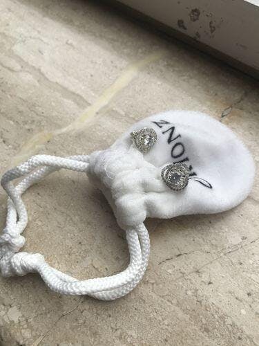 Three dainty lines of round zirconias encase a luminescent round solitaire stud. They give you a more dazzling and attractive look as opposed to the round solitaire stud earrings. There is a gap between the halo and the solitaire to give you a unique design that stands out in a crowd. A timeless design, this makes for a great addition to your jewellery closet.