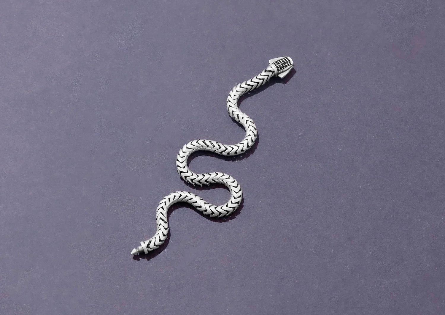 Whether paired with streetwear or formal fits, the Viper Edge Bracelet commands attention — not by shouting, but by standing its ground with quiet power.